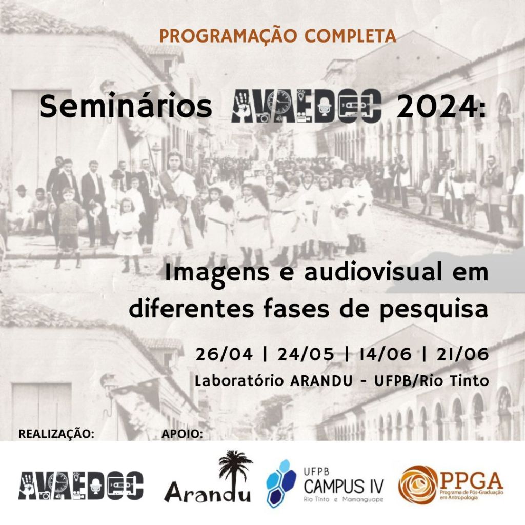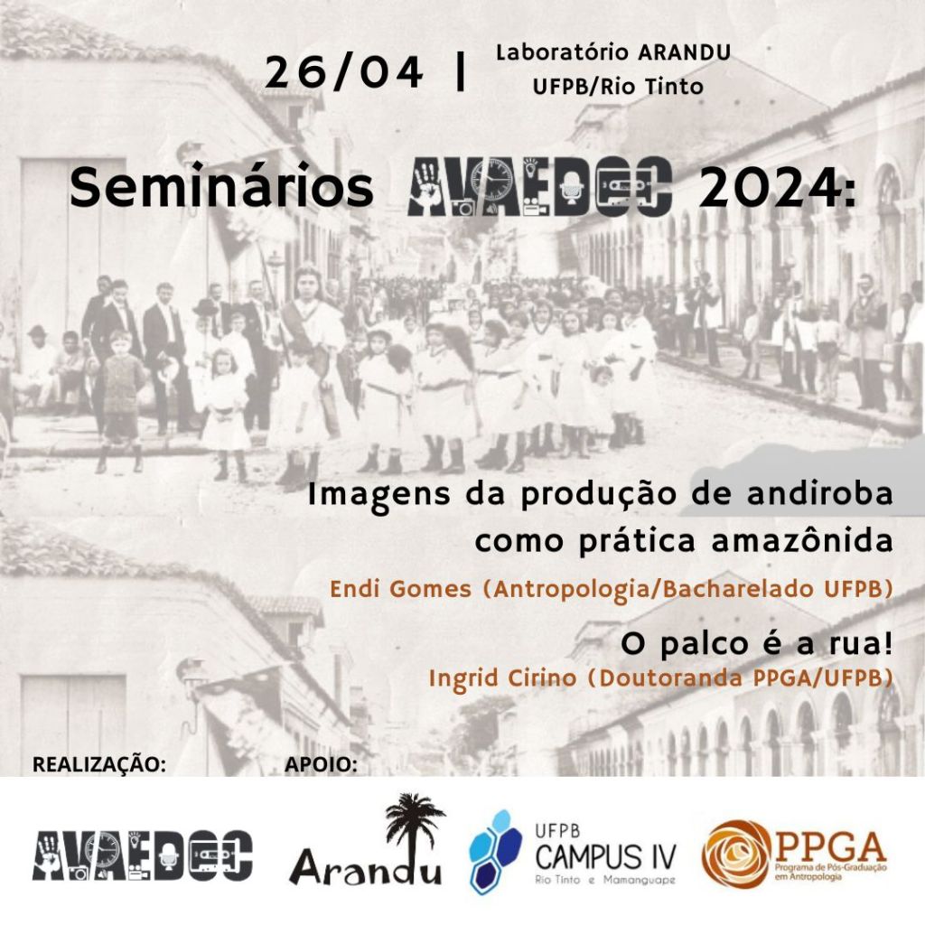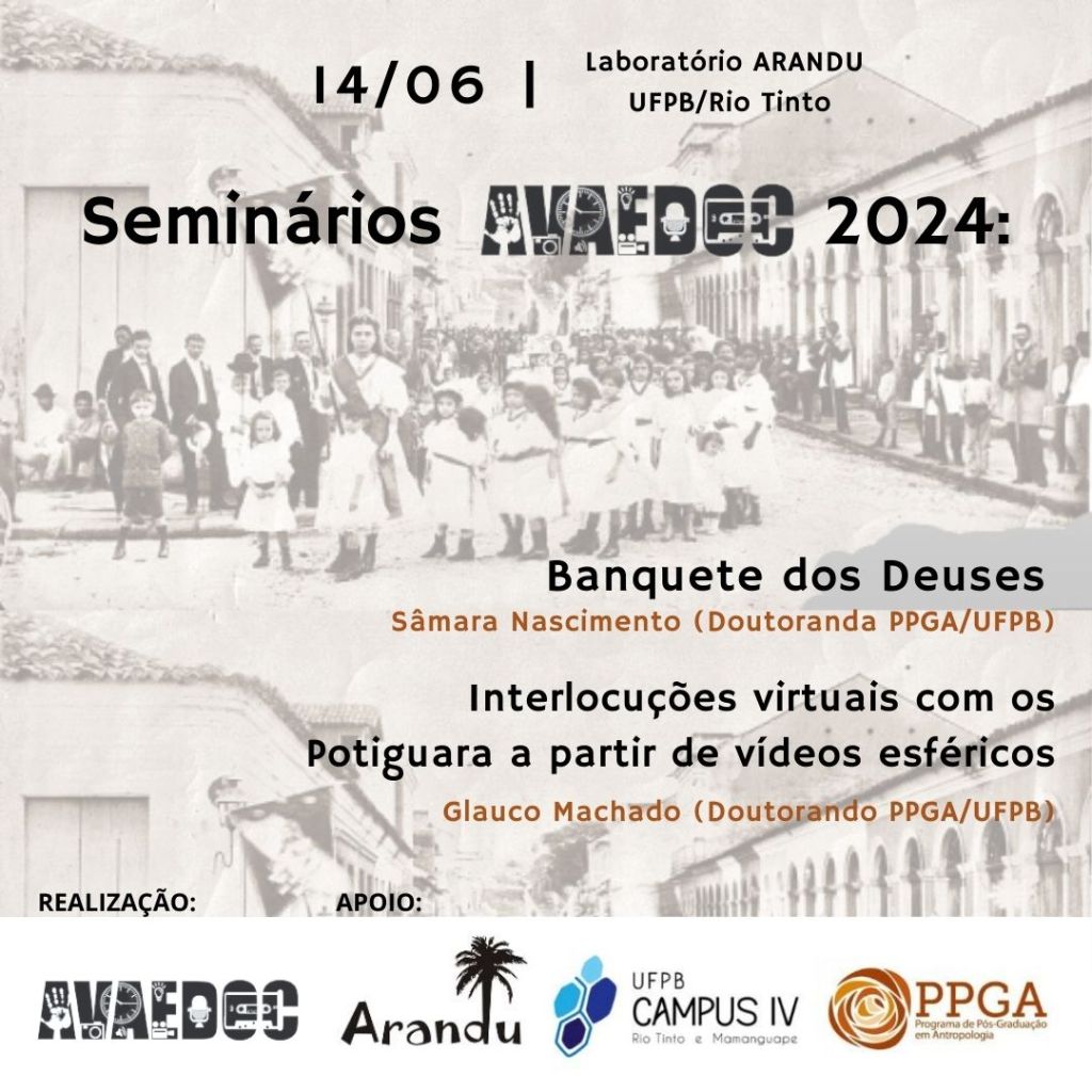 14 junho [transferido para 02/08/2024] Local: Labarandu – Laboratório de Antropologia Visual Arandu/Campus UFPB/Rio Tinto