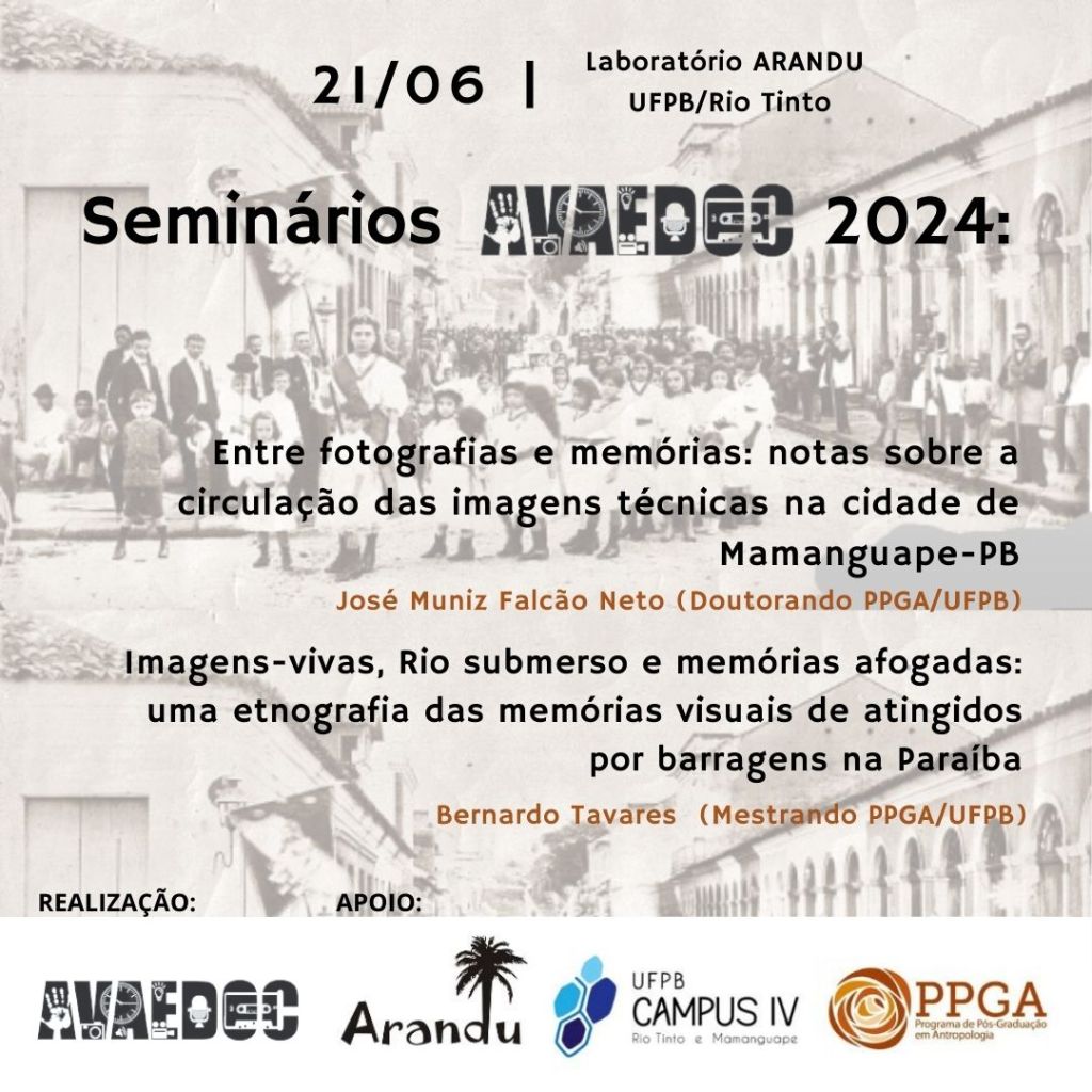 21 junho [transferido para 09/08/2024] Local: Labarandu – Laboratório de Antropologia Visual Arandu/Campus UFPB/Rio Tinto